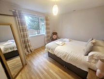 RéférenceTigh na Sith, 6-room house 129 m2 on 2 levels. Modern and tasteful furnishings: living/dining room with dining table and TV (flat screen), wood-burning stove. Exit to the garden, to the terrace. 2 double bedrooms, each room with 1 double bed. 1 small room with 1 bed. Kitchen (4 hot plates, oven, dishwasher, microwave, freezer). Bath/shower/WC. Upper floor: 1 double bedroom with 1 double bed and shower/WC. 1 small room with 1 bed and bath/shower/WC. Heating. Large terrace. Terrace furniture, barbecue. Facilities: washing machine. Internet (WiFi, free). Parking at the house. Please note: suitable for families. Non-smoking house. 1 pet/ dog allowed. TV only EN. Independent Private Chef available to cater for Special Occasion.