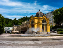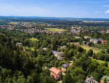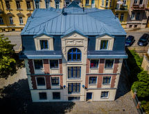 The mansion Villa Merlin is a house built in the old English style, situated in a residence quarter on the edge of the historical city centre of Marianske Lazne. House, 3 storeys, built in 2006. In the resort, 100 m from the centre, in a central, quiet position, located by a road, in the countryside. In the house: storage room for skis, central heating system. Parking on the premises. Shop, restaurant 100 m, bus stop Mariánské lázně, tržnice 400 m, outdoor swimming pool 1 km, indoor swimming pool 1 km. Golf course (18 hole) 3 km, tennis 500 m, slopes 3 km. Please note: the photo is just an example. Additional accommodations can be booked. The southeast side is opened over the house terrace into one of the most beautiful portions of the historical spa park. The proprietor arrange gladly on demand of guests an attendance of cultural events, of cure treatment, of drinking cures, a visit in the swimming pool, at the golf or tennis court, in the riding school, trips into the environs as well as scenic flights.