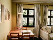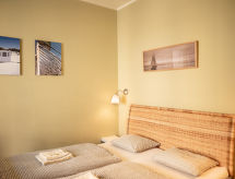RéférenceGoethe, 3-room apartment 47 m2 on 1st floor. Very beautiful and cosy furnishings: living/sleeping room with 1 pull-out bed (2 pers.), dining table and satellite TV. 2 rooms, each room with 1 double bed. Kitchenette (2 hot plates, kettle, microwave, freezer). Shower/WC. Very beautiful view of the garden. Facilities: Internet (WiFi, free). Parking (fenced) at the house. Please note: suitable for families. Non-smokers only. Maximum 1 pet/ dog allowed. Fire extinguisher.