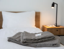 RéférenceLocTowers A4.4.3, 2-room apartment 57 m2 on 4th floor. Spacious and bright, very comfortable and modern furnishings: open living/dining room with 1 double sofabed (150 cm, length 200 cm), dining table, cable TV and digital TV. Exit to the balcony. 1 room with 1 double bed (2 x 80 cm, length 200 cm). Open kitchen (oven, dishwasher, 4 ceramic glass hob hotplates, toaster, kettle, freezer, electric coffee machine, Capsules for coffee machine (Delizio) extra, raclette grill, fondue Set (cheese)). Shower/WC. Underfloor heating. Balcony 8 m2, west facing position and north facing position. Balcony furniture. View of the resort. Facilities: washing machine, dryer, iron, children's high chair, baby cot, hair dryer. Internet (WiFi, free). Please note: non-smokers only. Maximum 1 pet/ dog allowed. NL-00007181